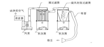 ③電解鋁廠用大功率吸塵器采用旋風初效過濾筒可過濾85%以上的粉塵,含塵氣流經收縮形進口,切向進入初效過濾筒時,由上向下作螺旋形旋轉運動,塵粒在離心力的作用下被拋向器壁,并沿器壁下旋,進入特殊結構的密封收塵裝置內;凈化后的氣體由下向上作內螺旋形旋轉,經管道進入濾芯除塵器。使精過濾筒入口濃度大大降低。粉塵及顆粒物不會直接撞擊濾芯,可以增加濾芯的使用壽命。并降低了精過濾筒的入口濃度。